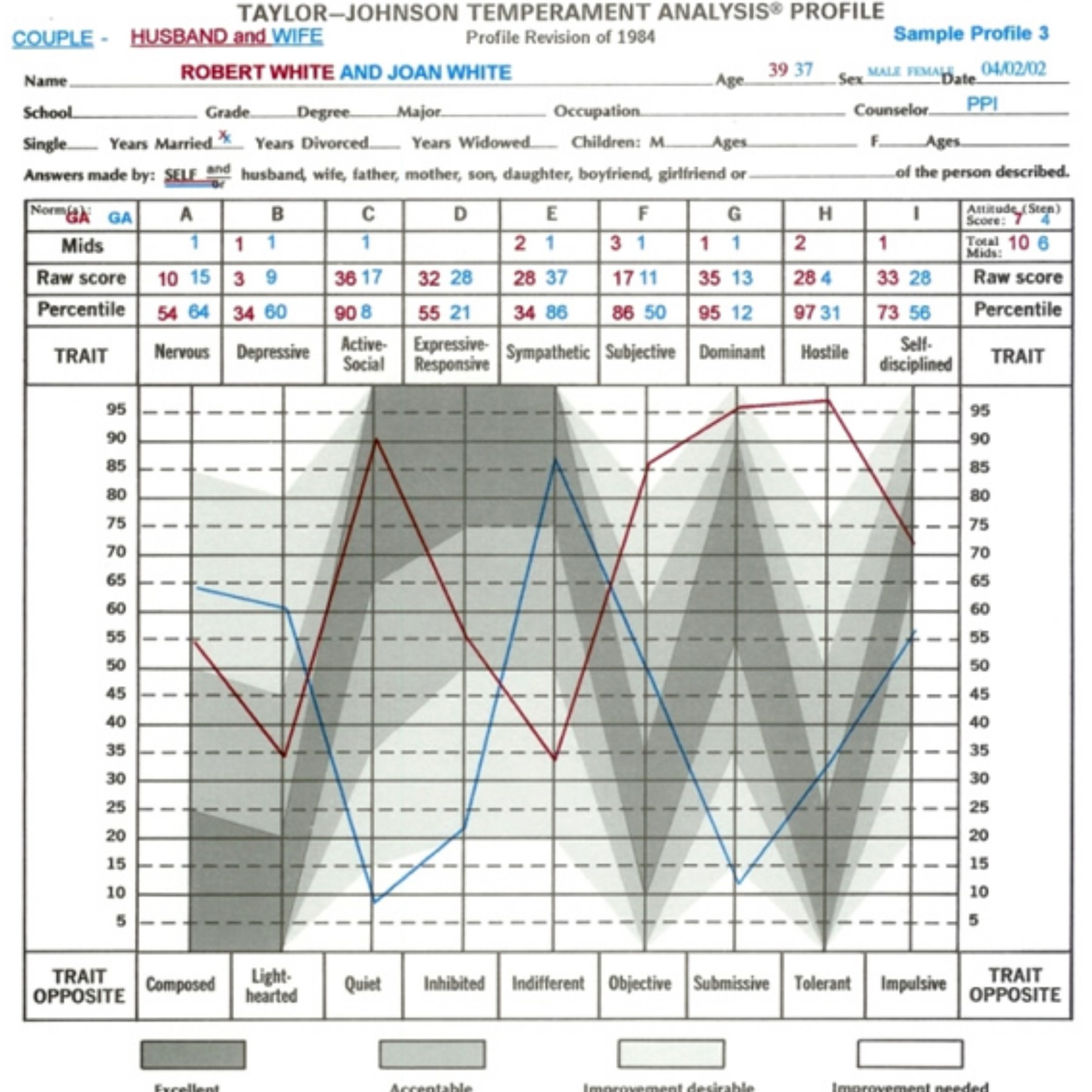 TJTA 由美国心理学家泰勒和约翰逊共同研发,核心是测量人格中14 种关键气质特质(如支配性、社交性、情绪稳定性、责任感等),每个特质都有明确的 “高分表现” 和 “低分表现”,且没有绝对的优劣之分。利用它可以精准衡量紧张与镇定、主观与客观等 9 组对立人格特质。