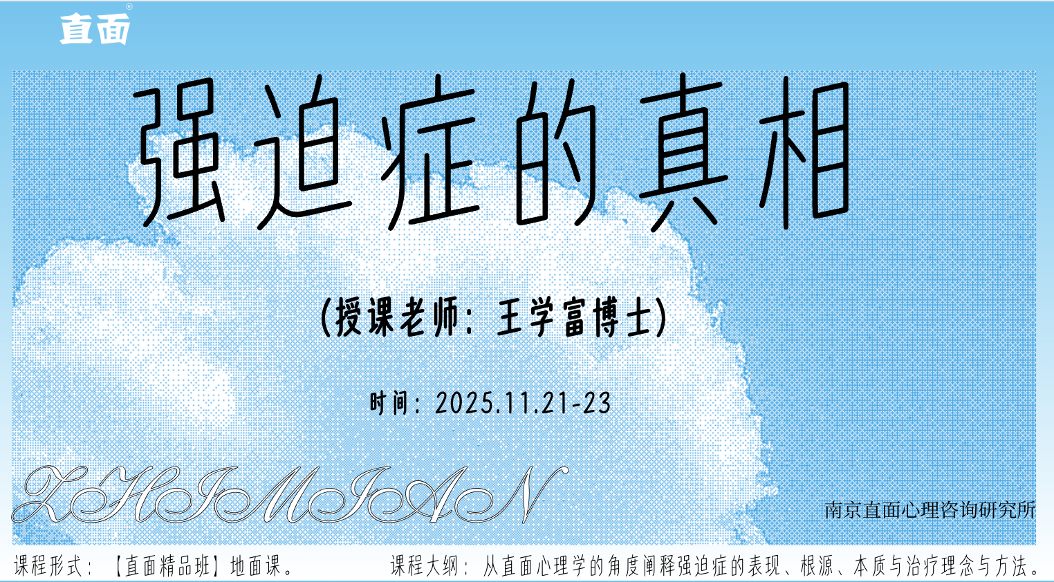 多年来,王学富老师一直希望开设系统的强迫症专题课程,并计划撰写全面阐述强迫症治疗的专著。如今,这个时机已经成熟。特别是在带领直面学塾弟子的过程中,他深感有必要将三十年来在强迫症治疗领域的理解和经验,系统地传授给弟子们,同时也向对该领域有特殊兴趣的同行开放这一宝贵资源。