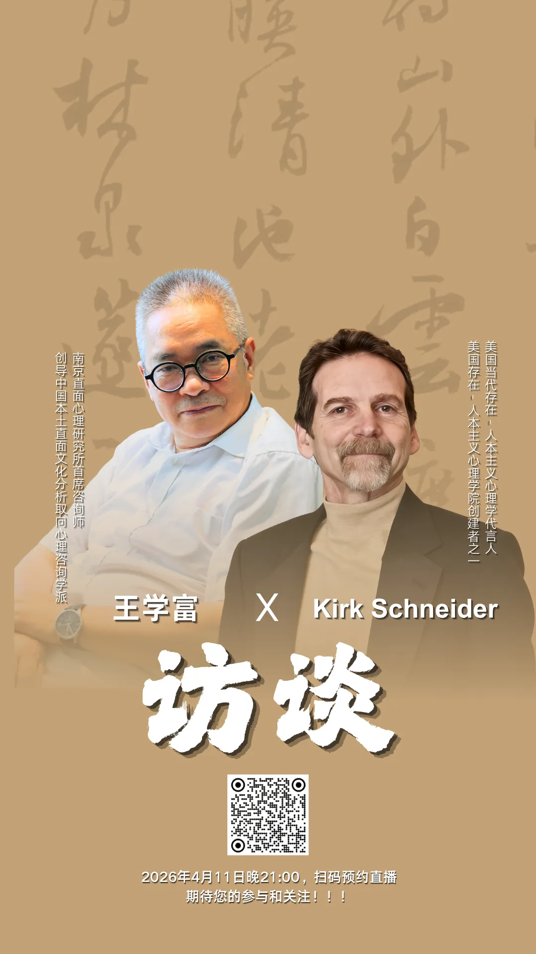 今晚21点,王学富访谈Kirk Schneider